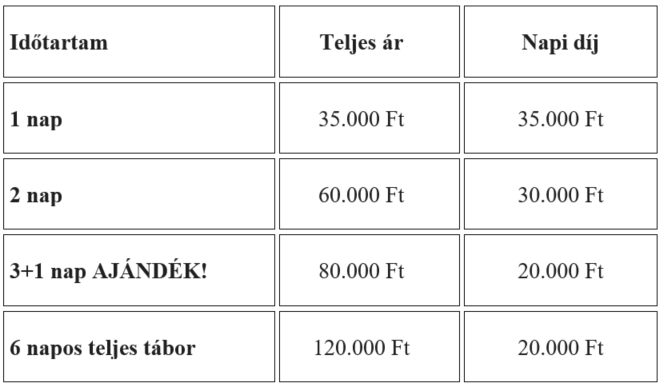Felnőtt tábor tervezett időpontja az utószezonban:
